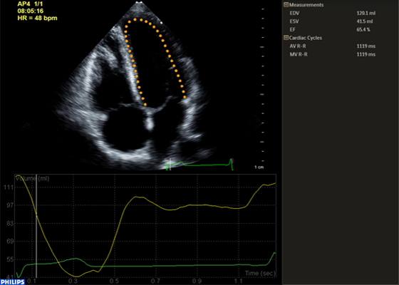 Nelle indagini a ultrasuoni Anatomical Intelligence esamina i dati ecografici di un paziente e applica l'intelligenza adattiva del sistema con modelli anatomici 3D per ottenere più facilmente risultati più riproducibili. Gli strumenti di Anatomical Intelligence, come HeartModel, utilizzano funzionalità avanzate di modellazione degli organi, sezionamento delle immagini e quantificazione convalidata per agevolare l'esecuzione degli esami ecografici e favorirne la riproducibilità offrendo al contempo nuovi livelli di informazioni cliniche, per rispondere alle difficoltà economiche e cliniche con cui si confrontano gli ambienti sanitari odierni.